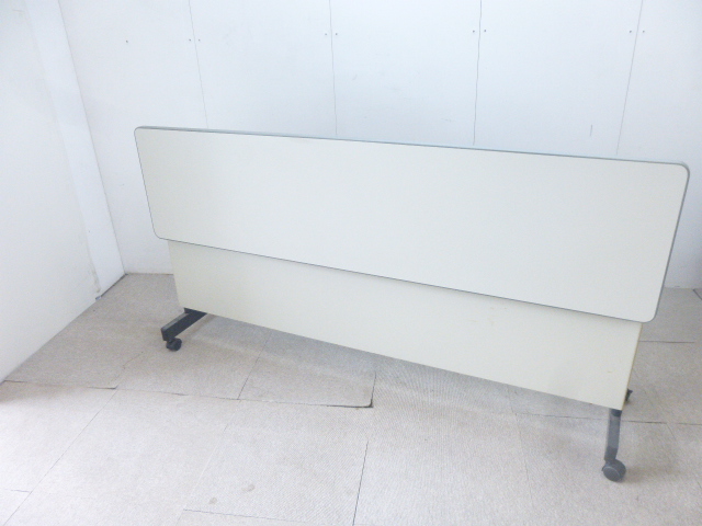 色は汚れの目立たない定番のニューグレー色、奥行の狭いこのタイプは、スペースに余裕のない場所での会議で重宝し探している方の多いタイプです。