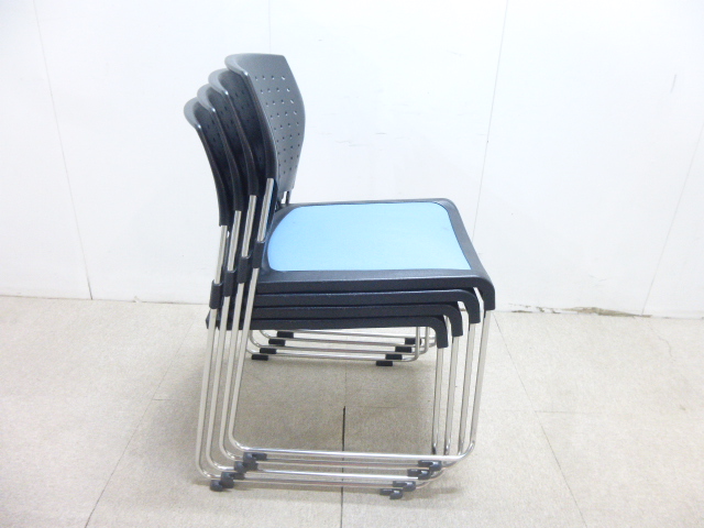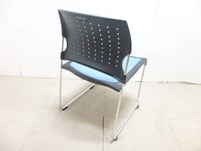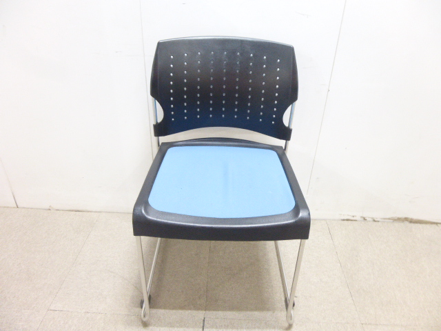 鮮やかなブルーの座面のスタッキングチェア入荷です。